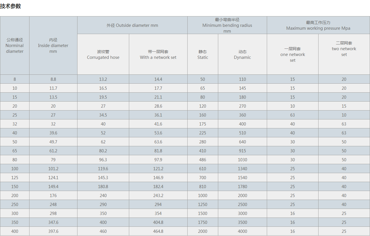 2.軟管管體為薄壁不銹鋼管體液壓成形,具有較強的柔韌性、伸縮性、彎曲和抗振能力強、編織網套的加強保護、使之具有更高的承壓能力。